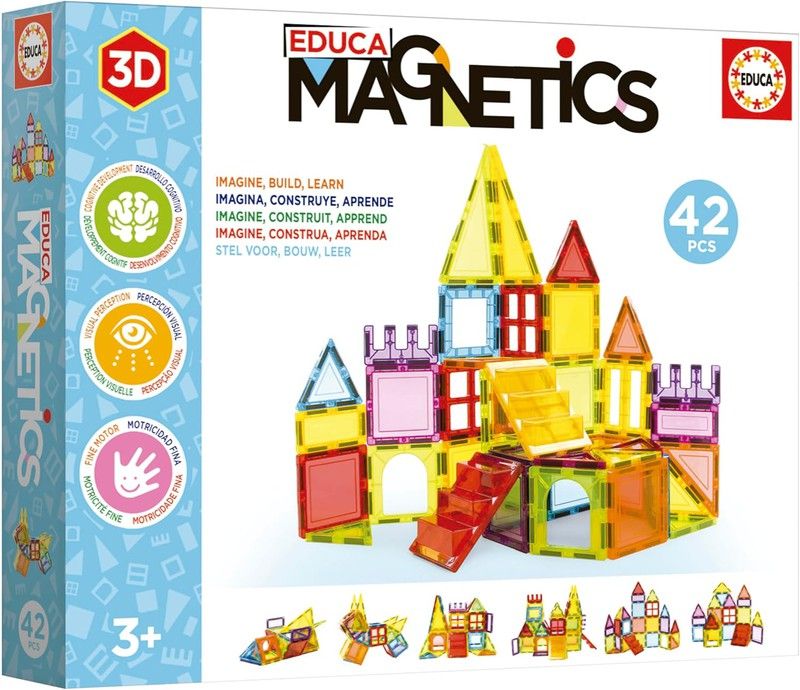 Educa Magnetics 42 peças de blocos magnéticos 3D que permitem que meninos e meninas a partir dos 3 anos criem figuras geométricas. Enquanto jogam, eles aprendem naturalmente os princípios dos Ímãs e da Força Magnética. É perfeito para desenvolver o reconhecimento de cores e formas. Desenvolvem a sensação do espaço tridimensional, aprendendo tudo isso enquanto brincam. É ideal como brinquedo pré-escolar, nas escolas, nas creches, ideal para brincar em família, em casa. AVISO: Recomendações de segurança: os elementos de fixação, proteção e embalagem não fazem parte do brinquedo. Antes de entregar o brinquedo à criança, é necessário certificar-se de que todos foram retirados. RECOMENDAÇÃO: Salve essas informações para referência futura. O conteúdo do jogo pode variar do mostrado nas fotografias.