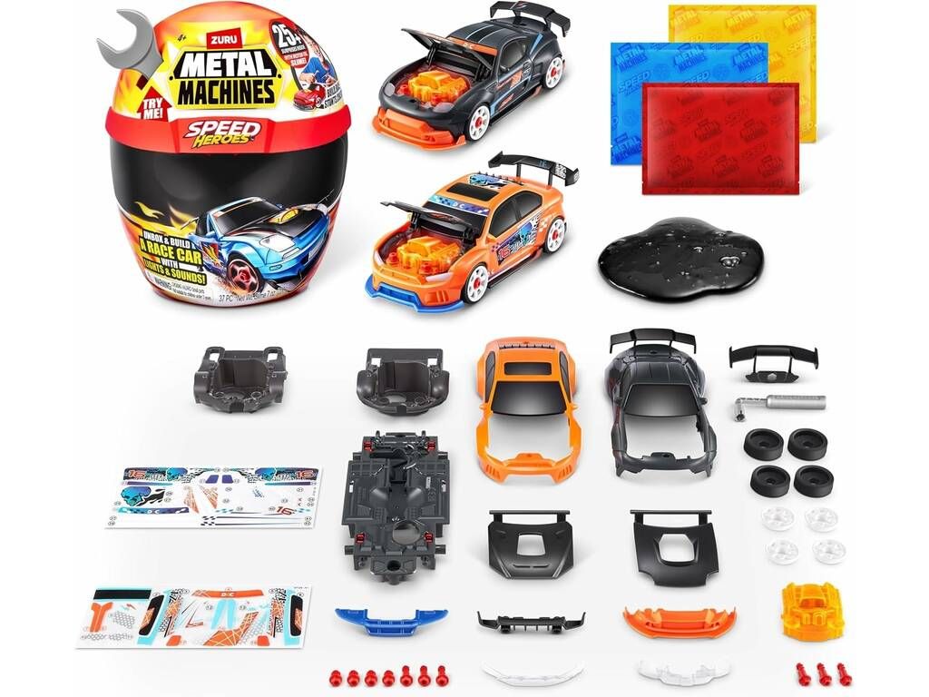 Experimente o processo criativo de um carro de corrida único! Graças ao novo Metal Machines Speed Heroes, crie e personalize seu veículo da Zuru! Obtenha este capacete incrível com mais de 25 surpresas, com o qual você pode criar um carro passo a passo, um veículo com luzes e sons, ideal para as mentes mais criativas e fãs dos carros mais legais. Assuma o assento do motorista do seu próprio carro de corrida personalizado com Metal Machines Speed Heroes! Abra o capacete de corrida para descobrir mais de 20 surpresas dentro e construir seu próprio carro de corrida personalizado. Personalize o design e a carroceria do carro de corrida enquanto o constrói. Seu Speed Hero personalizado ganha vida com luzes e sons! Desafie seus amigos para corridas e veja qual Speed Hero dominará o circuito.
