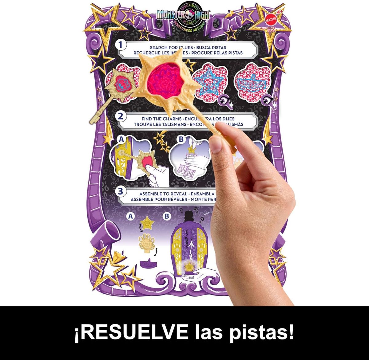 Descubra os segredos escondidos atrás das portas de Hauntlywood com este conjunto de guarda-roupa Skulltimate Secrets: Hauntlywood Mysteries. Inclui a boneca Clawdeen Wolf, roupas e acessórios de moda. Clawdeen Wolf viajou para Hauntlywood, Califórnia, e nunca mais se ouviu falar dela. Procure pistas para encontrá-la e descubra mais de 19 surpresas em 3 passos divertidos e aterrorizantes: procurar, encontrar e descobrir. Primeiro passo? Procure os símbolos do mapa do tesouro com a chave da lupa. Ao abrir as portas do guarda-roupa, você encontrará enfeites que combinam com os símbolos do mapa. Esses enfeites estão escondidos entre grandes surpresas, dignas do melhor tapete vermelho. Conecte os 3 enfeites para criar um único talismã misterioso. Insira o talismã na abertura do guarda-roupa, deslize-o para cima e prepare-se para uma descoberta de partir o coração: a boneca Clawdeen Wolf. Repita os passos várias vezes para diversão sem fim. Agora que Clawdeen Wolf apareceu, é hora de se arrumar. Com mais de 125 combinações possíveis de roupas e acessórios, você arrasará no palco de Hauntlywood. Segredos deslumbrantes espreitam nas sombras de Hauntlywood! Confira a coleção completa Skulltimate Secrets: Hauntlywood Mysteries para ainda mais descobertas e bonecas Monster High fabulosas.