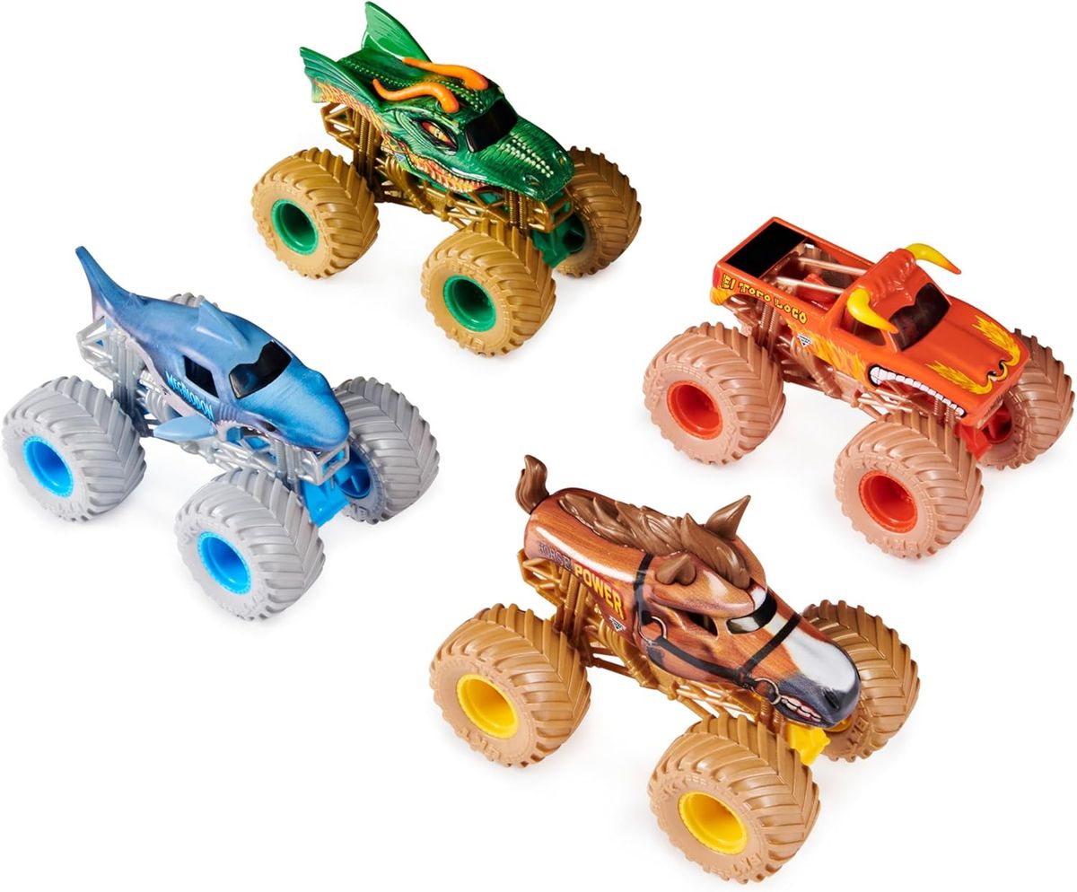 Adquira o Conjunto de 4 Veículos Monster Jam Diecast na Escala 1:64 da Spin Master (6053860) e tenha quatro dos personagens mais carismáticos da popular saga de veículos poderosos. Estes veículos são feitos de metal fundido, réplicas perfeitamente projetadas de suas contrapartes da vida real. Este incrível conjunto inclui Toro Loco, Megalodon, Dragon e Horse Power. As coleções de veículos Monster Jam estão disponíveis na Juguetilandia. Navegue em nosso site para ver todos os modelos e colecione os que faltam! Idade recomendada: 3+ anos. Inclui: Uma caixa de armazenamento ilustrada e um conjunto de 4 veículos Monster Jam. Escala: 1:64 Dimensões aproximadas da caixa de armazenamento: 12 cm de altura x 37 cm de largura x 12 cm de profundidade. Dimensões aproximadas de cada veículo Monster Jam: 7 cm de altura x 6 cm de largura x 10 cm de profundidade. Observação: As dimensões dos veículos Monster Jam podem variar dependendo do modelo. Produto oficial Monster Jam!